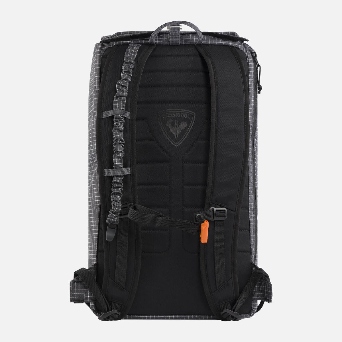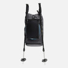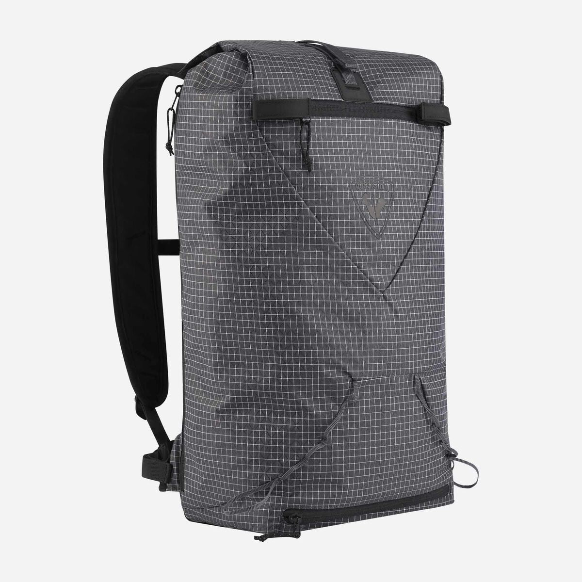 External straps offer quick-access to a diagonal ski carry system