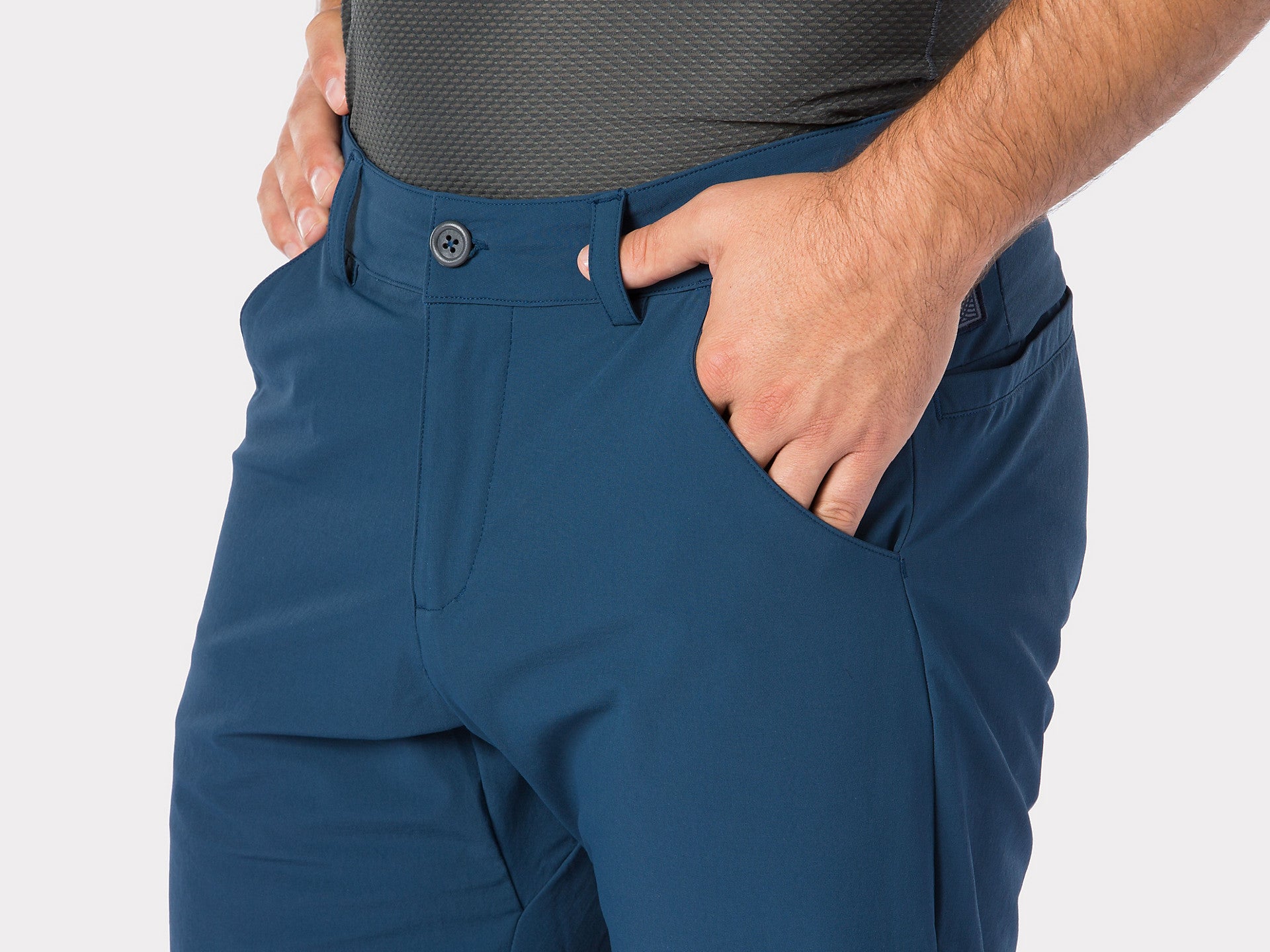 - Knit gussets at leg openings provide additional stretch for easier movement on and off bike