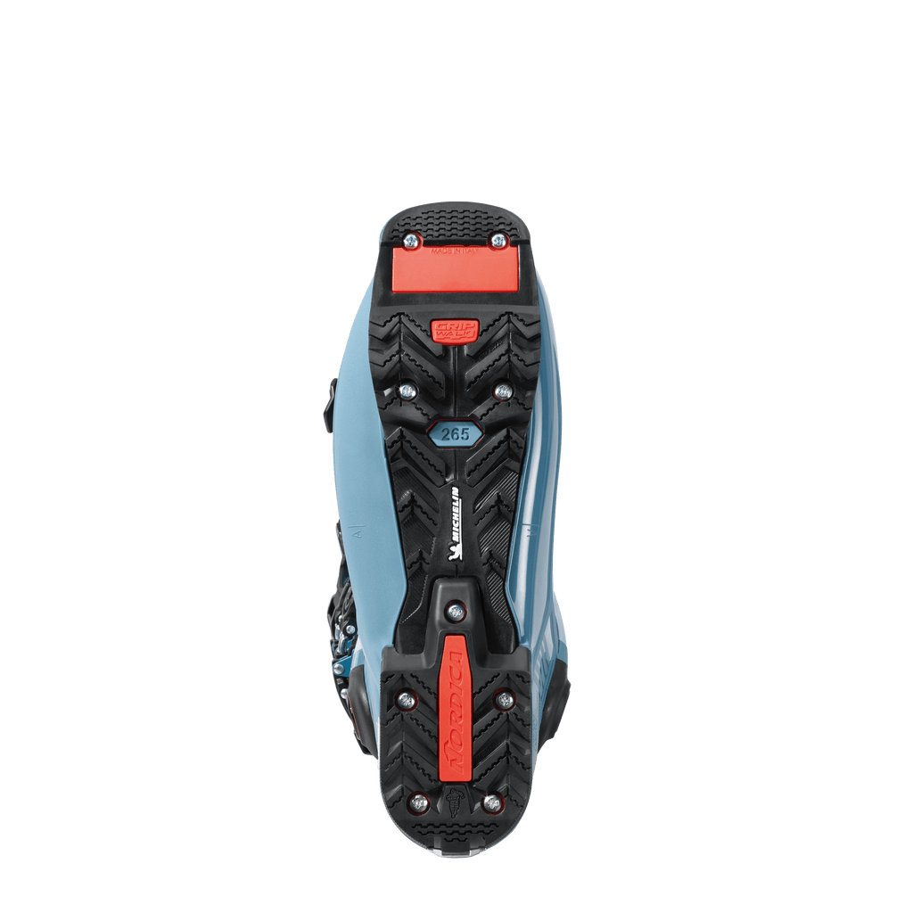 If you approach each day as an adventure, Nordica’s Unlimited 130 LT DYN is your soulmate. Offering exceptional performance on both the approach and the descent, it sets a new standard in all-mountain touring boots. Instead of classical bales, the Unlimited 130 LT DYN showcases a wire closure system. This streamlined design cradles your foot to deliver a precise fit that boosts comfort and control. And when it’s time to hike or skin, you can simply undo the boot’s quick-release power strap and flip the toe buckle to release the closure system for greater comfort and mobility. This closure system pairs perfectly with a reimagined cuff that strategically uses the benefits of its tri-injected design to create a smooth flex and dynamic power transmission. This offers exceptional confidence and control. To further boost comfort and efficiency, the Unlimited 130 LT DYN features a ski-walk mechanism that has a truly outstanding range of motion of 65 degrees. And to better meet your needs and boost control, you can readily adjust the boot’s forward lean. Especially light and comfortable, the boot’s 3-D Light Performance Fit TF PrimaLoft Liner uses a 3-D shape to match the contours of your foot and is thermomoldable for truly custom fit. This liner is also PVC-free for a reduced impact on the environment. For exceptional versatility, the boot’s sole features DYN inserts and is compatible with GripWalk binding systems. And thanks to its screw-on design, the sole can readily be replaced to enhance the longevity of the boot. Forge your own path with Nordica’s Unlimited 130 LT DYN.