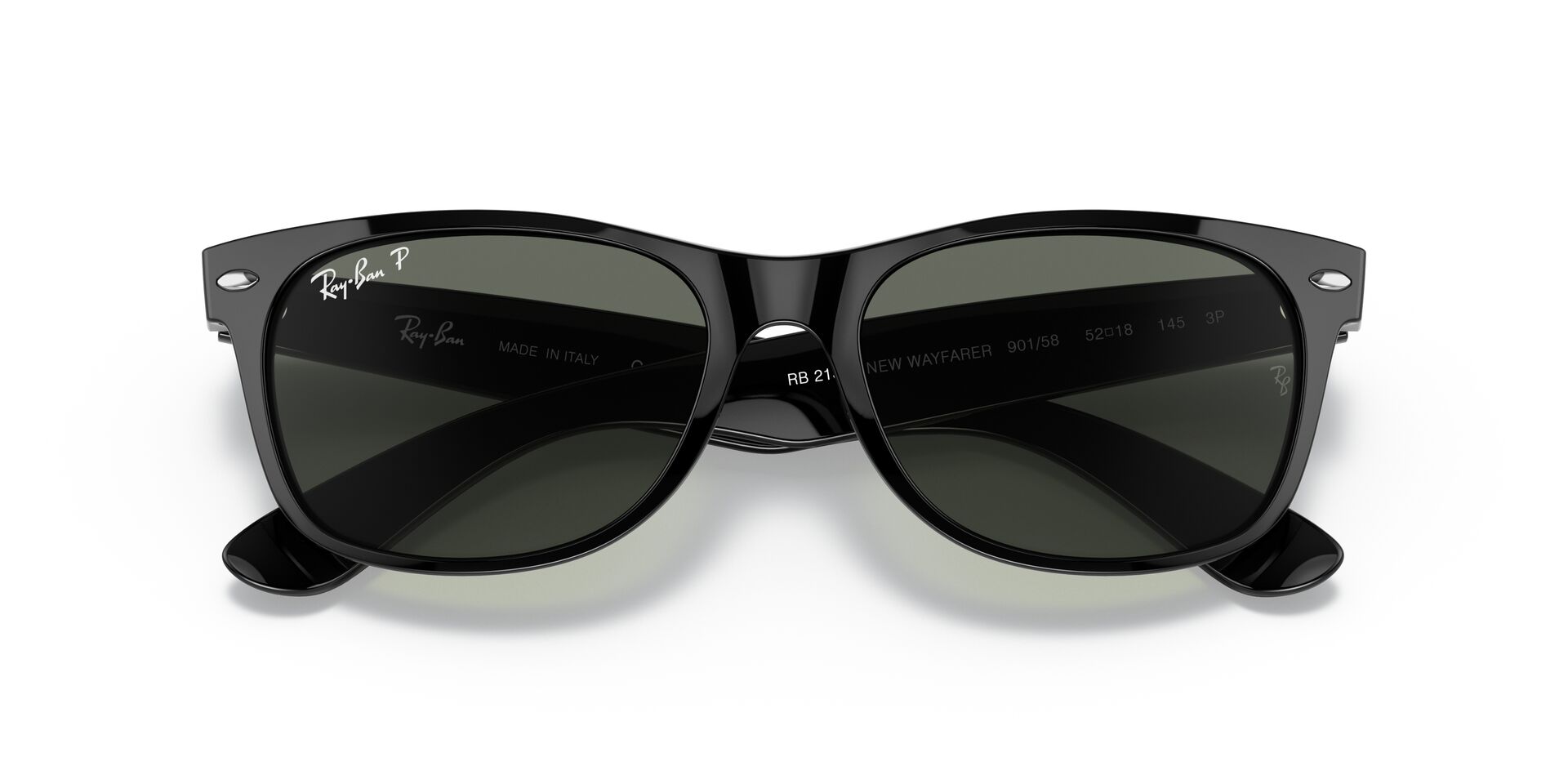 Choose classic black frames in a variety of lens treatments including crystal green, bi-gradient, G-15 Polarized and mirror styles. All Ray-Ban New Wayfarer Classic sunglasses are designed to offer an easy fit with a high level of visual clarity and protection.